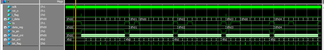 起始位發(fā)送要與tx_en同步。假設(shè)條件使用tx_en判斷,則會(huì)比tx_en慢一拍。